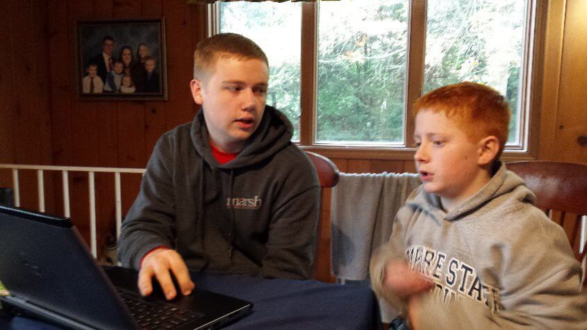 Here they are smiling at a practice table at Tennessee Tech.