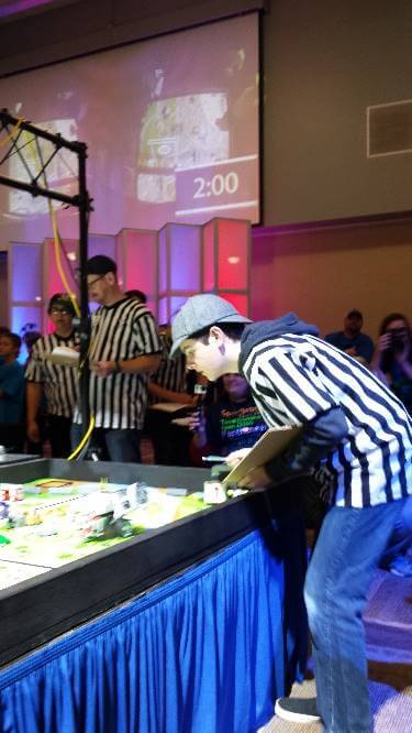 The team meets with the Robot Design Judges, showing off what their creation can do.